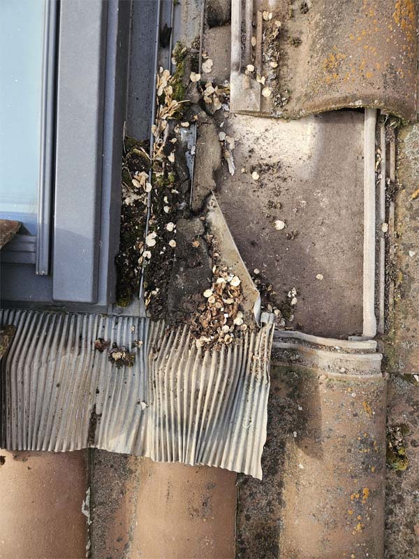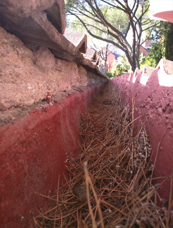 Fotografías de lo que nos encontramos cuando subimos a tejados para proceder a revisar, limpiar y desatascar tanto los canalones como las bajantes.